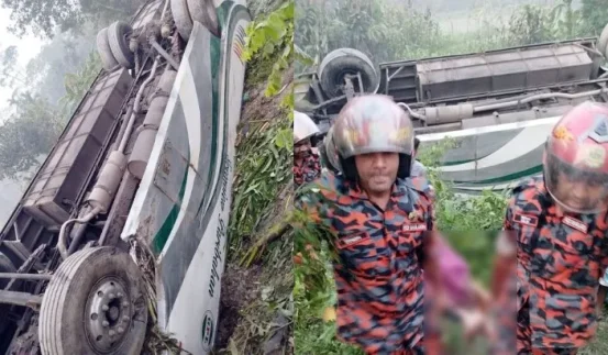 ঢাকা-বরিশাল মহাসড়কে বাস খাদে পড়ে নারী নিহত