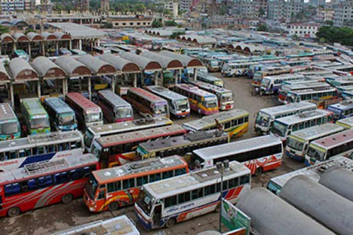 ঢাকায় বাস টর্মিনালে পরিবহন শ্রমিকদের অবস্থান