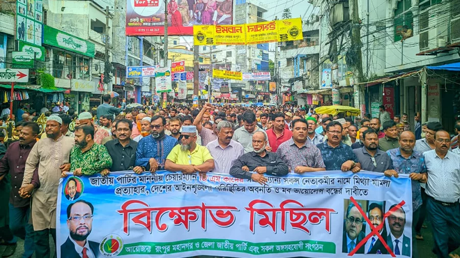 রংপুরে জাতীয় পার্টির বিক্ষোভ মিছিল, তিন নেতার কুশপুত্তলিকা দাহ
