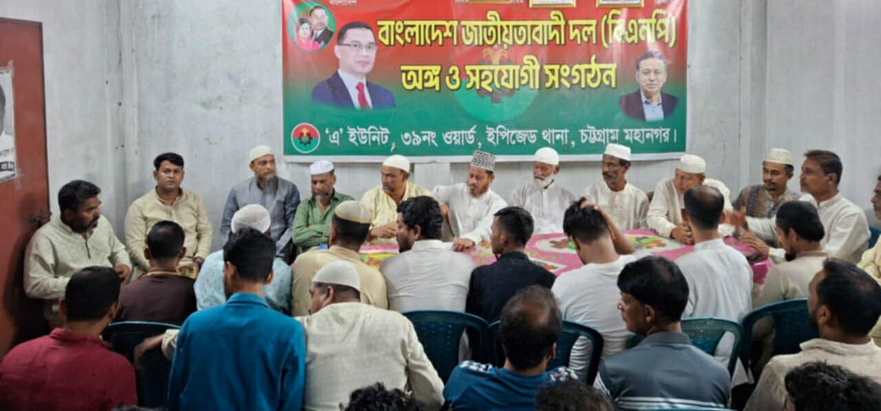 নিজস্ব প্রতিনিধি, চট্টগ্রাম: বিএনপি চেয়ারপার্সন সাবেক প্রধানমন্ত্রী বেগম খালেদা জিয়ার ৮১তম জন্মদিন উপলক্ষ্যে চট্টগ্রাম নগরীর ৩৯ নং ওয়ার্ড বিএনপি (এ ইউনিট) ও অঙ্গ সহযোগী সংগঠনের উদ্যোগে মিলাদ ও দোয়া মাহফিল অনুষ্ঠিত হয়েছে। শুক্রবার বিকেলে দলীয় কার্যালয়ে এ মিলাদ ও দোয়া মাহফিল অনুষ্ঠিত হয়।