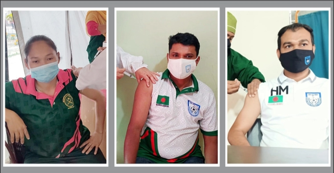 ফুটবলারদের মধ্যে সোহেল রানা, রায়হান হাসান, মামুনুল ইসলাম, জুয়েল রানা, আশরাফুল ইসলাম রানারাও করোনার টিকা নিয়েছেন।