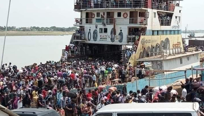করোনা সংক্রমণ রোধে সরকারের বিধিনিষেধের মধ্যেই ঈদকে সামনে রেখে শুক্রবার সকাল থেকেই ঘরমুখো যাত্রীদের চাপ বাড়ে ফেরি ঘাটে। যাত্রীদের অতিরিক্ত চাপের কারণে ফেরিতে কোনো যানবাহন উঠতে না পারার ঘটনাও ঘটেছে।