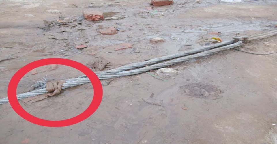 গতকাল বুধবার দৌলতদিয়া ৫নং ফেরিঘাটে এ দৃশ্য দেখা যায়। ৫নং ফেরিঘাটের পল্টুনের নতুন তার লাগিয়েছে ফেরিঘাট কর্তৃপক্ষ। তারের মাঝখানে খন্ডিত একটি অংশের সাথে অন্য একটি অংশ কাপড় দিয়ে জোড়া লাগানো হয়েছে। এতে ঘাট এলাকায় বড় ধরণের দুর্ঘটনা ঘটার সম্ভাবনা রয়েছে।